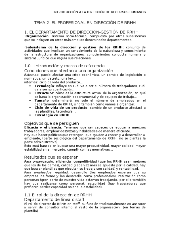 Introducción a la dirección de RRHH