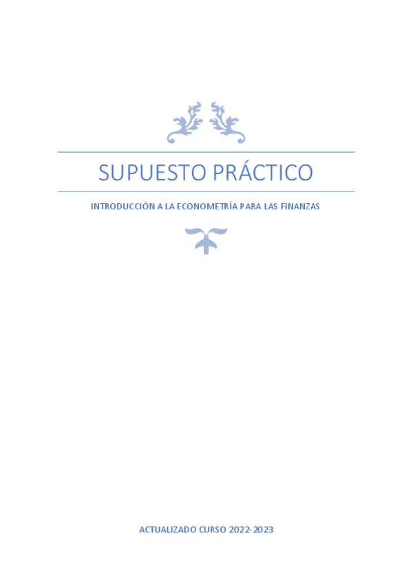 He publicado nuevos ejercicios de 2º Introducción a la Econometría para las Finanzas: Supuesto Práctico Completo.pdf