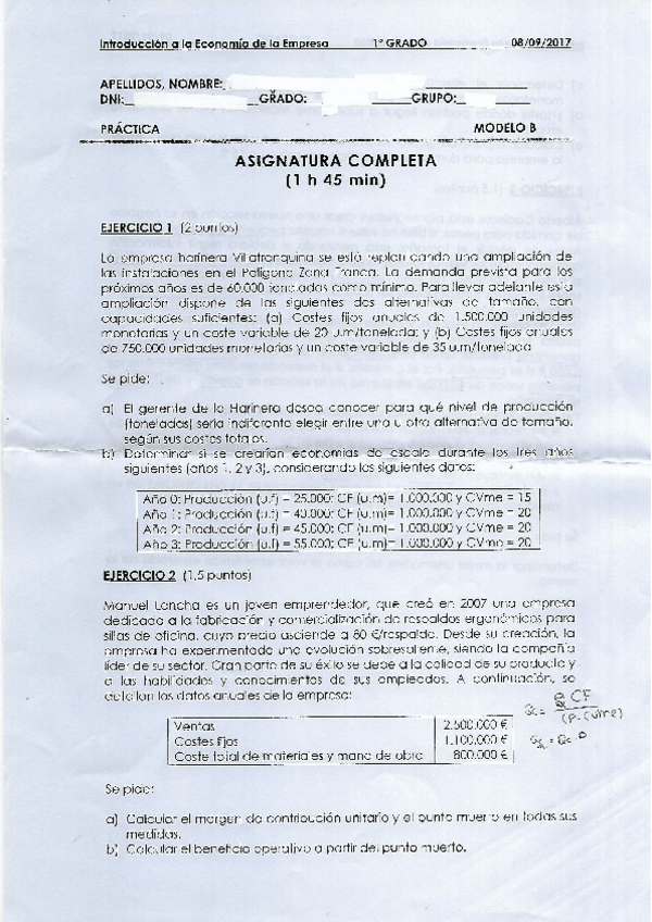 He publicado nuevos apuntes de 1º Introducción a la Economía de la Empresa: EJERCICIOS EXAMEN