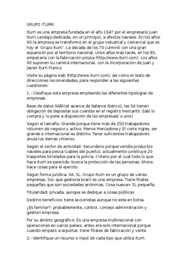 He publicado nuevos ejercicios de 1º Introducción a la Economía de la Empresa (Organización): Caso-GRUPO-ITURRI.docx