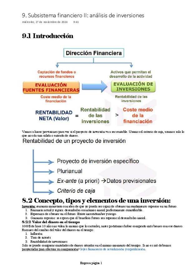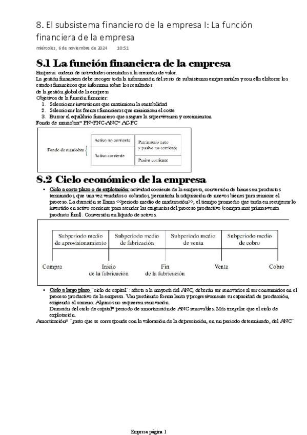 Apuntes tema 7 Empresa. Subsistema financiero; Rentabilidad y FMN
