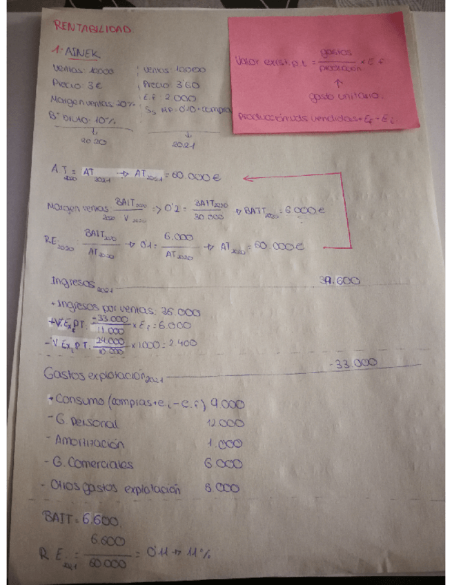 Saqué un 7 en la asignatura. Todos los problemas de rentabilidad económica y financiera de la relación de problemas resueltos. Profesora Carmen Barroso