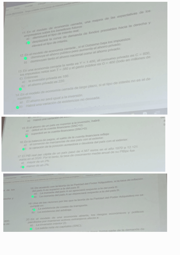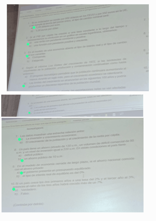 todo en el mismo documento: los tres ejercicios de las prácticas, la cuestión, y todas las preguntas test del tema 6 de introducción a la economía 2