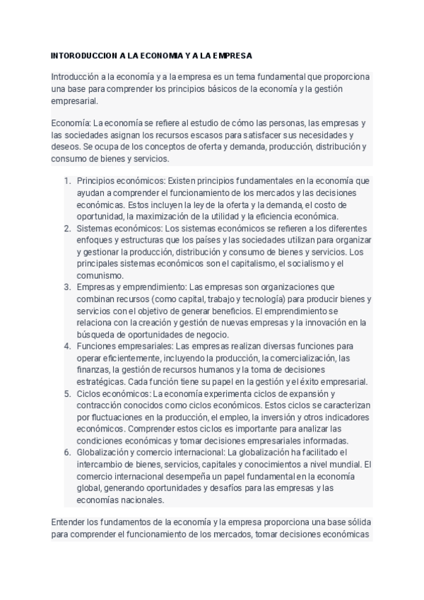 Introducción a la Economía Ya la Empresa