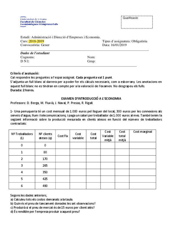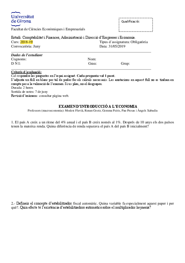 He publicado nuevos examenes de 1º Introducción a la Economía: Exàmens anys anterios