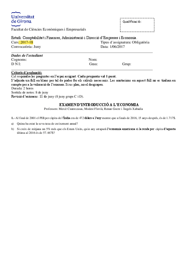 He publicado nuevos examenes de 1º Introducción a la Economía: Exàmens anys anterios
