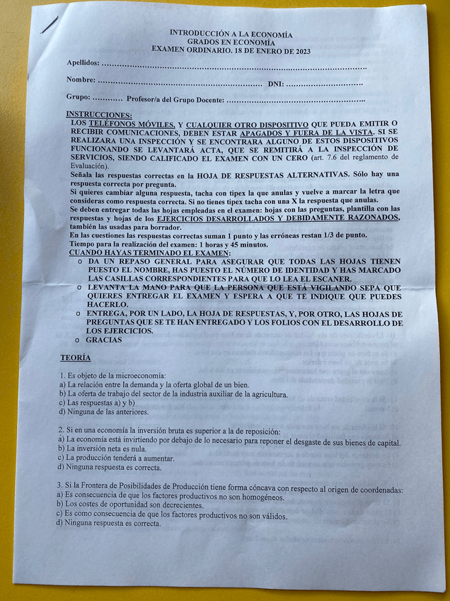 examen introduccion a la economia ENERO 2023