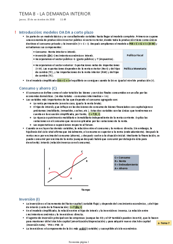 tema 8 FLUCTUACIONES DE LA ECONOMÍA A CORTO PLAZO. DEMANDA Y OFERTA AGREGADA