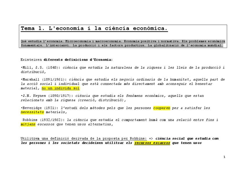 He publicado nuevos apuntes de 1º Introducción a la Economía: Introducció Economia 1er
