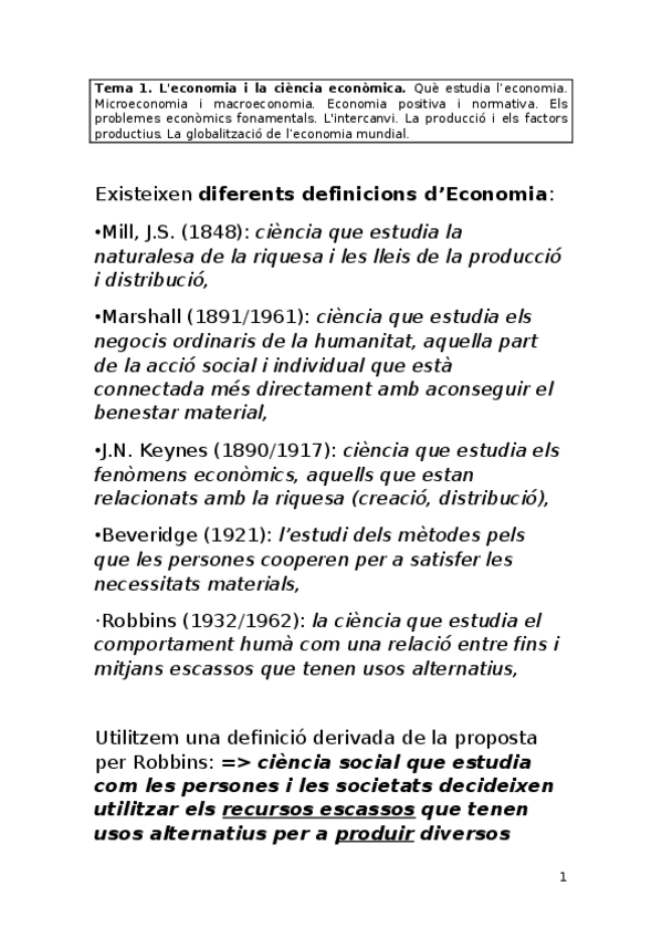 Introducció Economia 1er