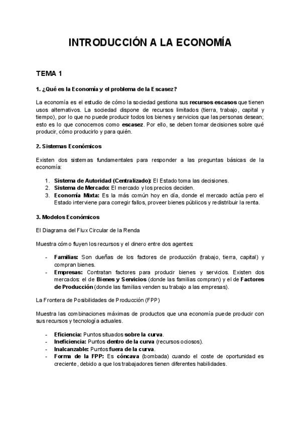RESUMEN TEMAS 1-9 INTRODUCCIÓN A LA ECONOMÍA 1ºADE