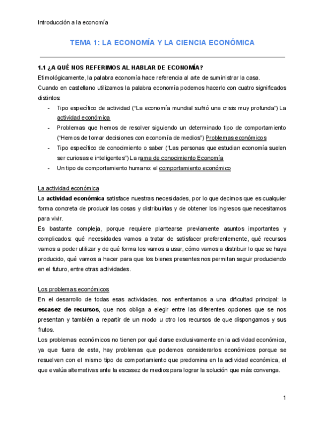 APUNTES INTRODUCCIÓN A LA ECONOMÍA (TEMAS 1-10)