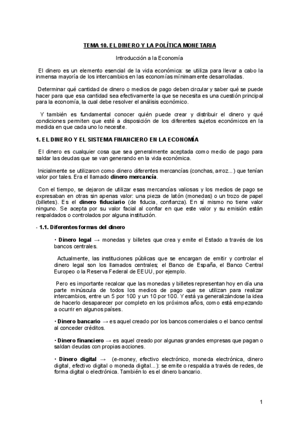 He publicado nuevos apuntes de 1º Introducción a la Economía: TEMA 8: EL DINERO Y LA POLITICA ECONOMICA.pdf