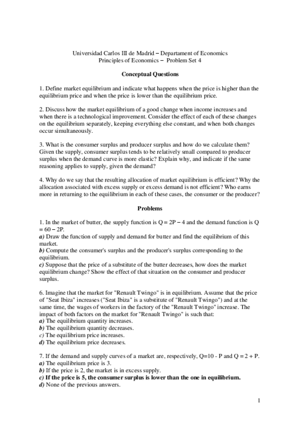 He publicado nuevos ejercicios de 1º Introducción a la Economía: Problemas