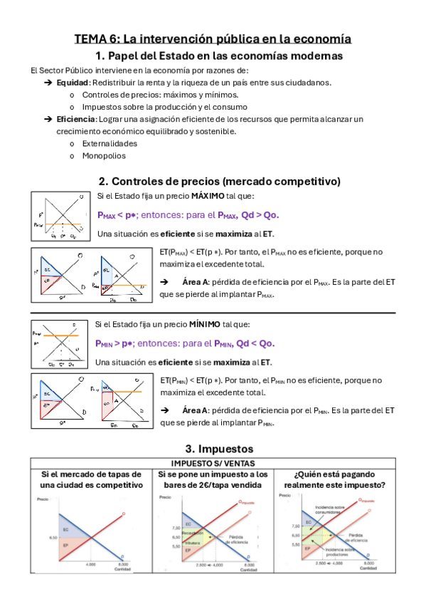1. El papel del estado en las economías modernas 2. Controles de precios 3. Impuestos 4. Externalidades 5. Monopolios