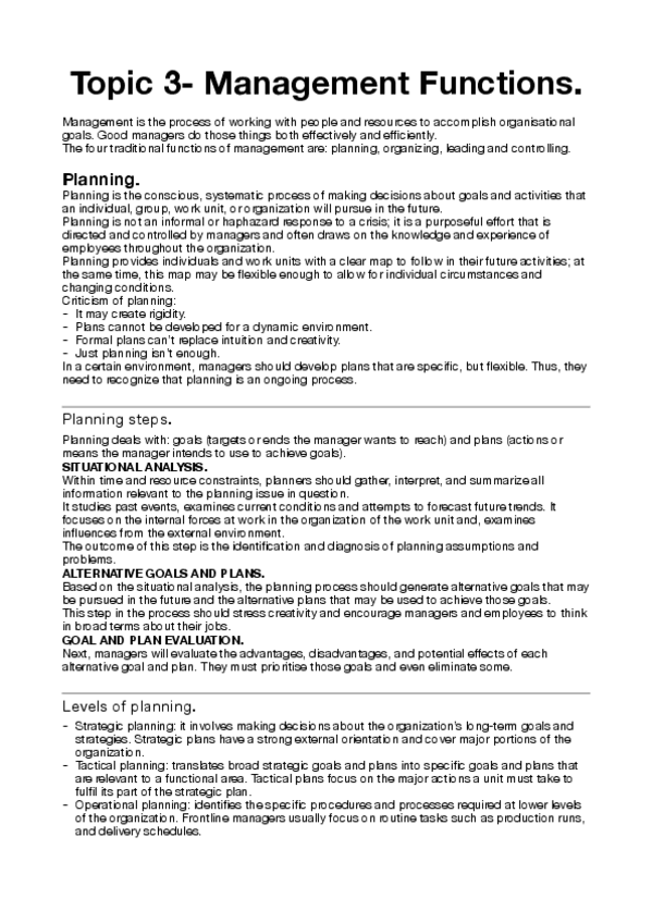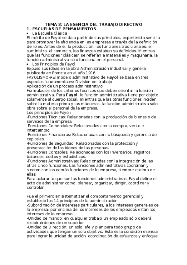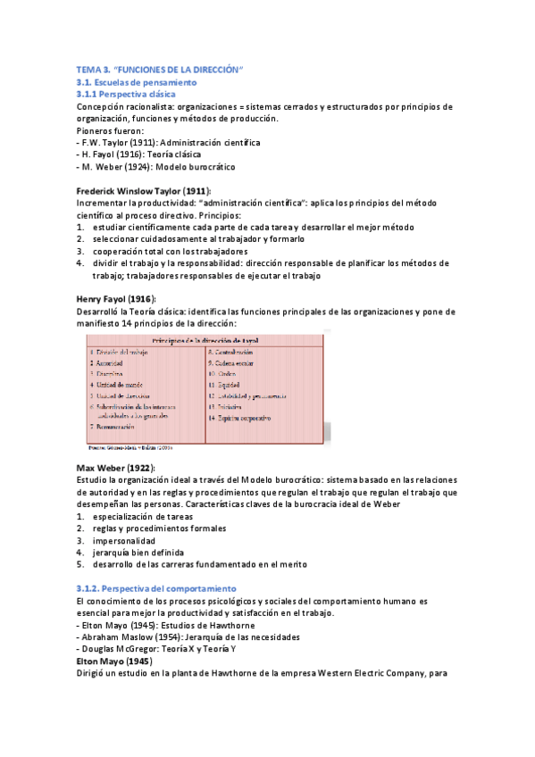 Tema 3: Funciones de la dirección 1. Escuelas de pensamiento 1.1 Perspectiva clásica 1.2 Perspectiva del comportamiento 1.3 Perspectivas actuales de la dirección 2 Planificación 3 Organización 4 Dirección de los Recursos Humanos 5 Control