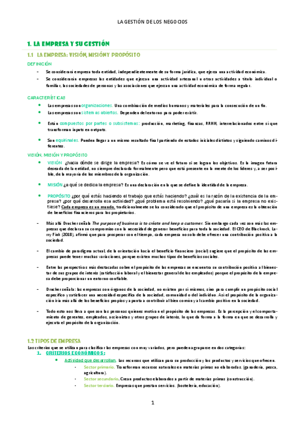 Apuntes completos del libro La gestión de los negocios (Introducción a la empresa)