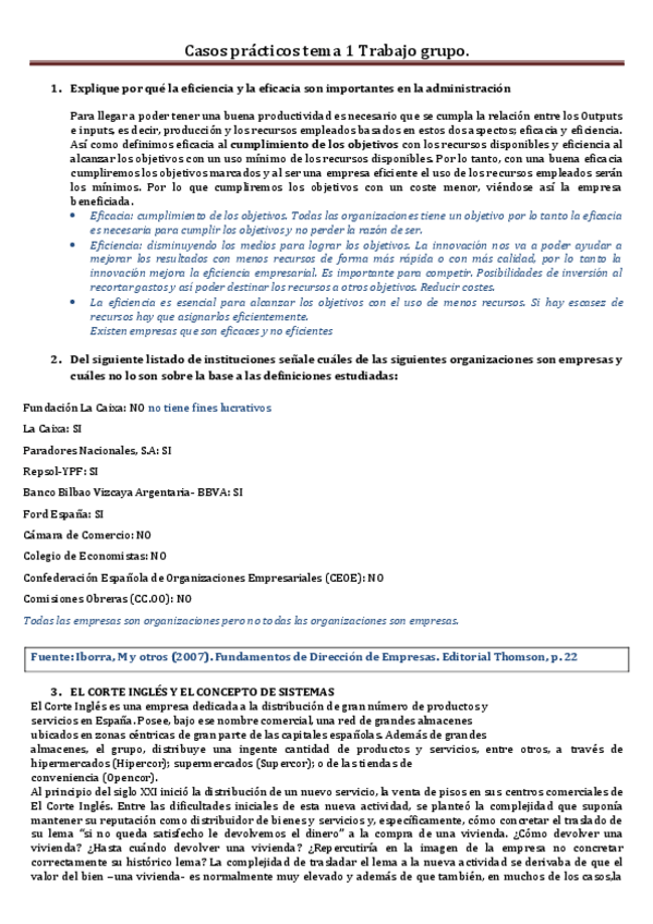 He publicado nuevos practicas de 1º Introducción a la Empresa: Casos prácticos CORREGIDOS tema 1.pdf