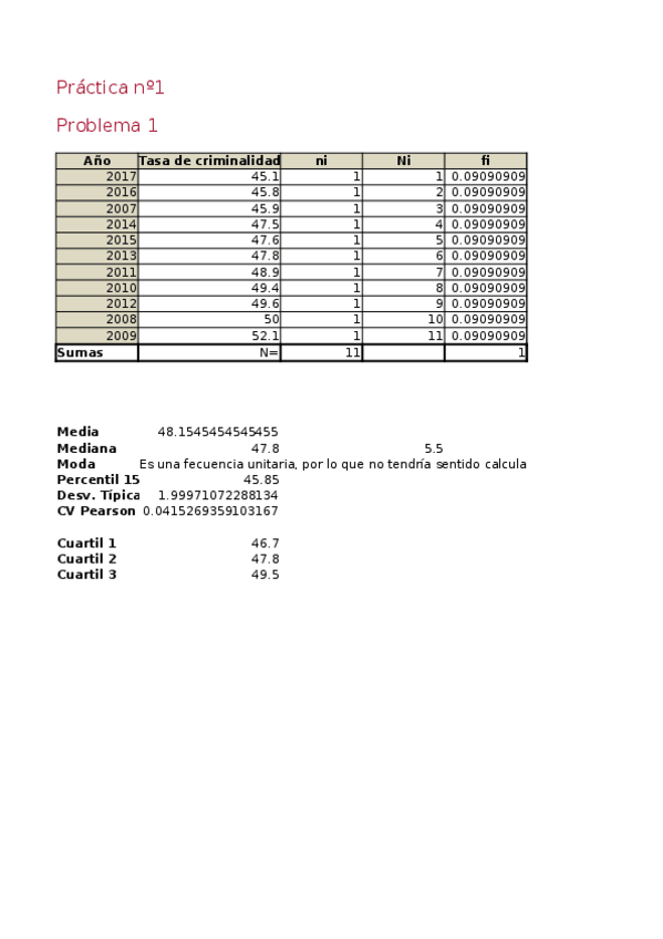 He publicado nuevos ejercicios de 1º Introducción a la Estadística: Practica-no1-Problema-no1.xlsx