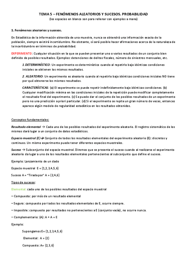 Apuntes Tema 5 Probabilidad Introducción