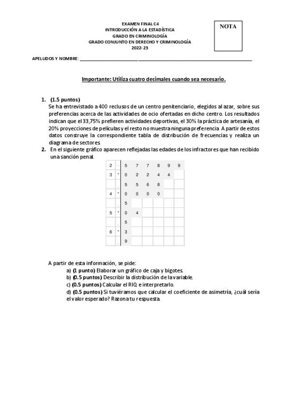 He publicado nuevos apuntes de 1º Introducción a la Estadística: 202324C3Examensolucion.pdf
