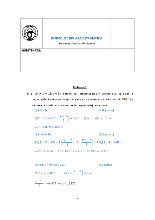 He publicado nuevos apuntes de 1º Introducción a la Estadística: Problemas-Distribucion-Normalsol.pdf