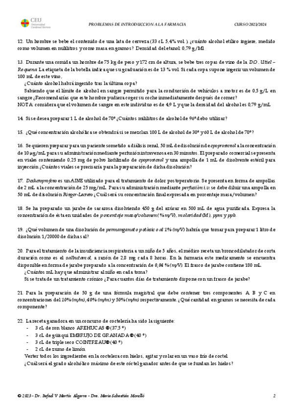 He publicado nuevos ejercicios de 1º Introducción a la Farmacia: Problemas-IalF-202324.pdf