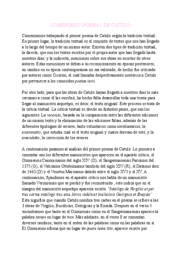 Practica de comentario del aparto crítico del primer poema de Catulo