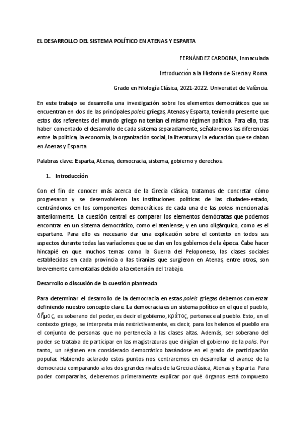 Trabajo de historia sobre la comparación entre las formas de gobierno de Atenas y Esparta en la época clásica.