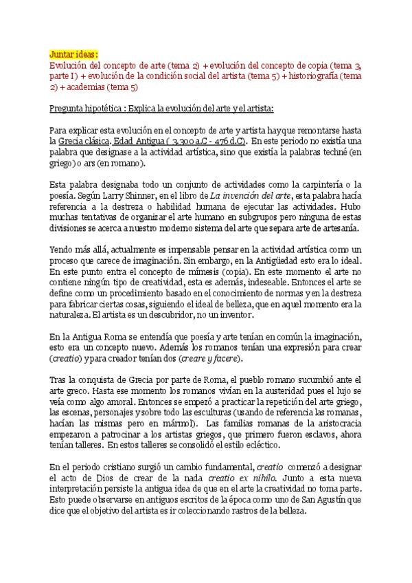 Estos son mis apuntes de Historia del Arte, profesora Ana e Inés. Además dejo un guión que me sirvió para recoger 3 temas (arte, artista y copias).