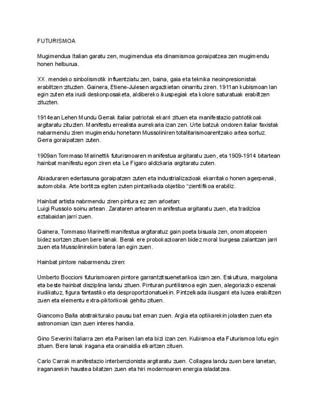 Aquí están todos los repasos de los apuntes del segundo cuatrimestre de historia del arte. Tema 9 -Futurismo