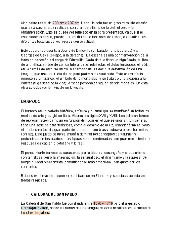 Apuntes para estudiar el examen, con las obras que entran y contexto histórico