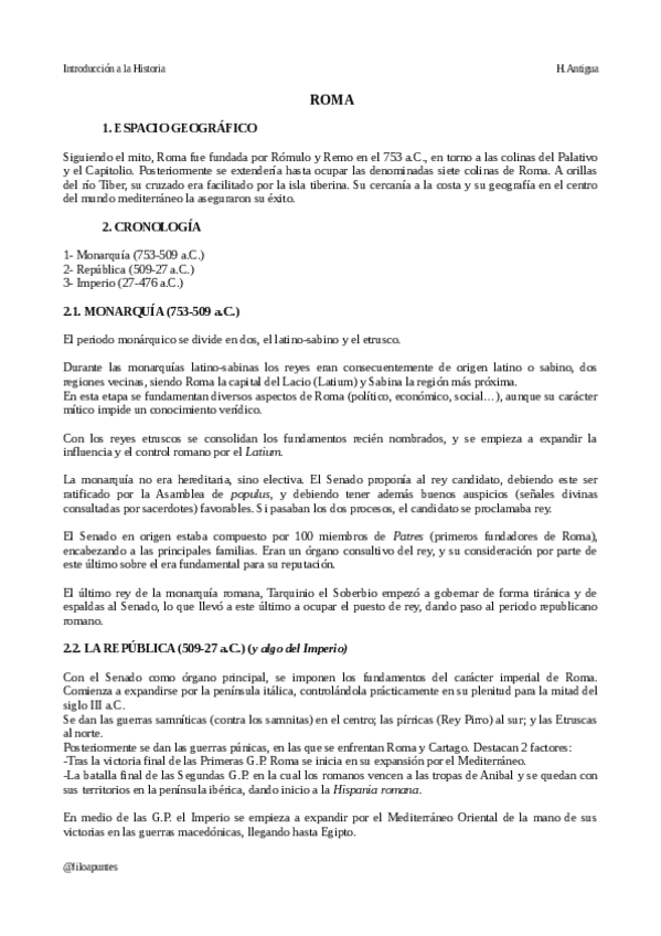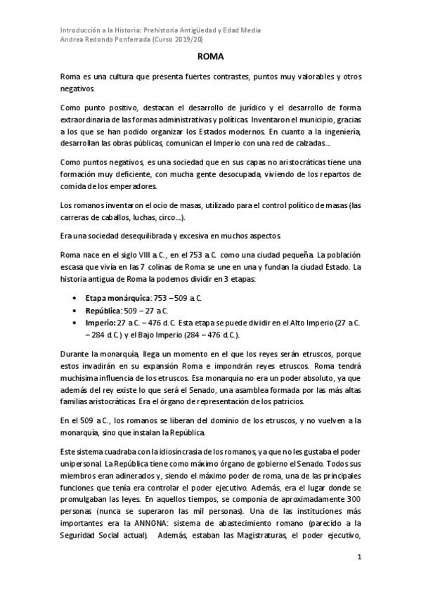 He publicado nuevos apuntes de 1º Introducción a la Historia: Prehistoria, Antigüedad y Edad Media: ROMA.pdf