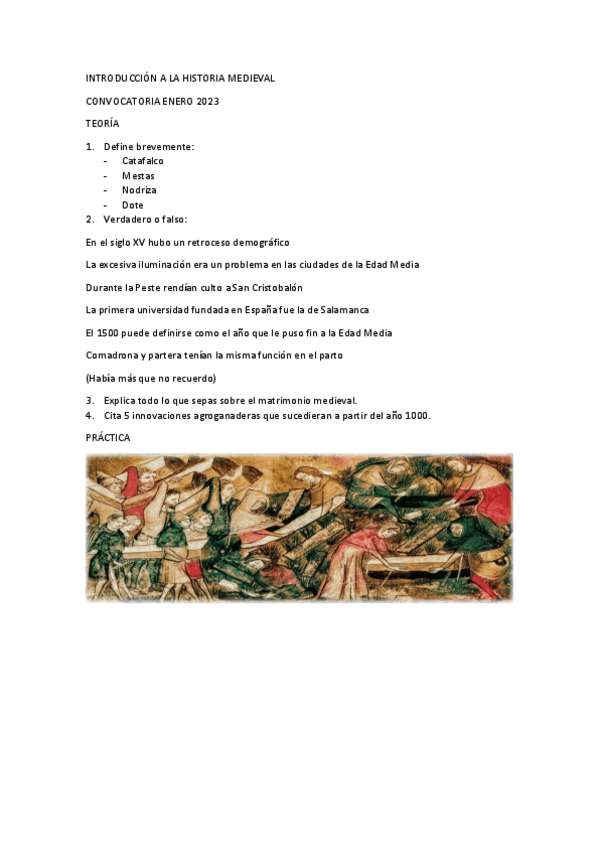 Examen convocatoria Enero 2023 de Introducción a la Historia: Historia Medieval