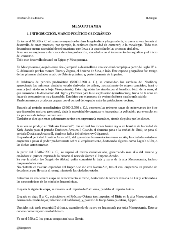 He publicado nuevos apuntes de 1º Introducción a la Historia: Prehistoria, Antigüedad y Edad Media: MESOPOTAMIA.pdf