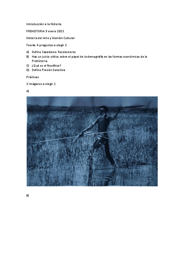 Examen completo convocatoria Enero 2023 de Introducción a la Historia: Prehistoria