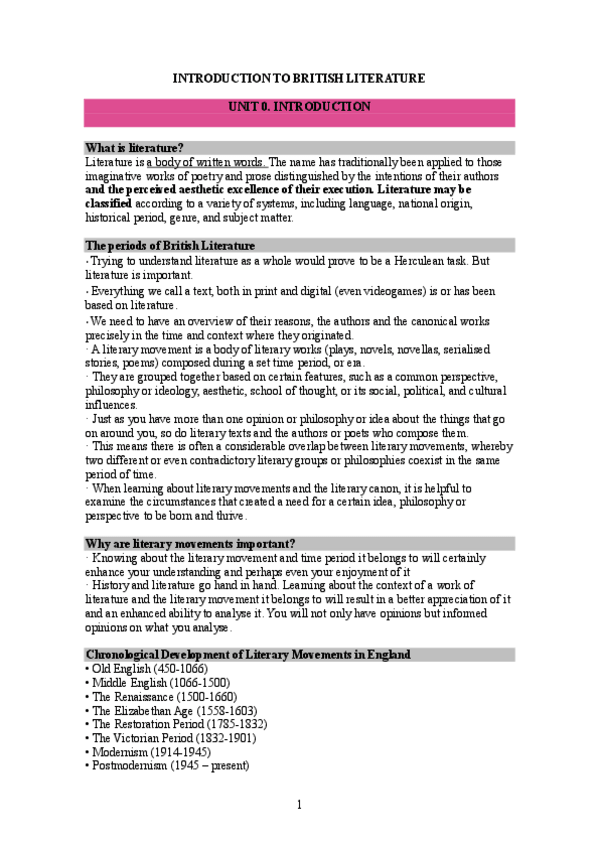Introducción y Tema 1 - Introducción a la Literatura Inglesa