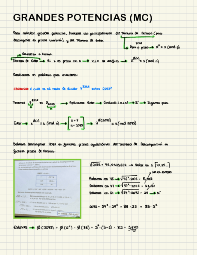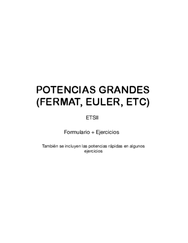 GRANDES POTENCIAS - TEOREMA DE EULER (EJERCICIOS + FORMULARIO). Se incluyen ejercicios con potencias rápidas.