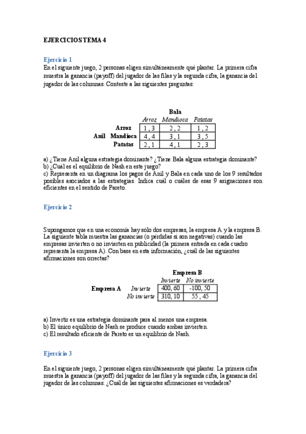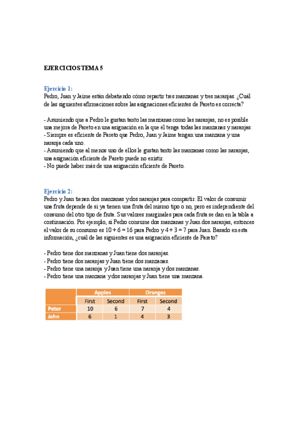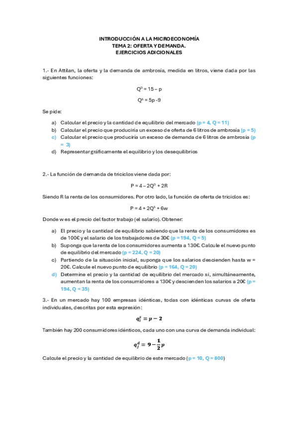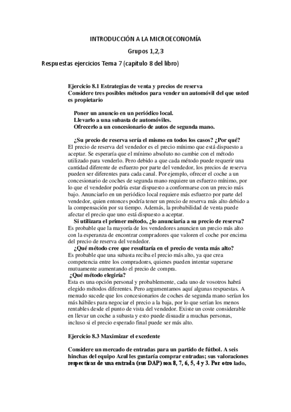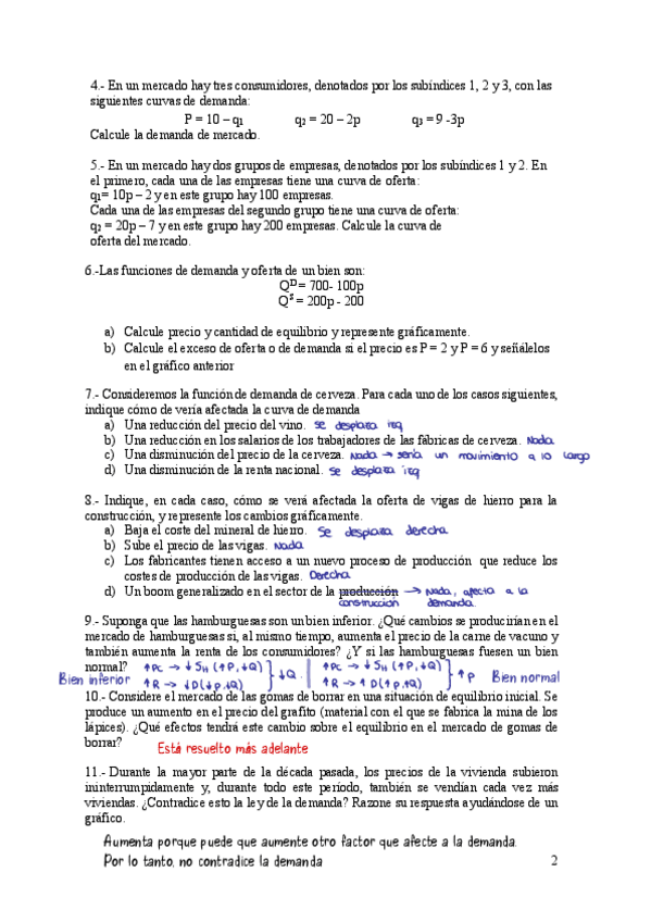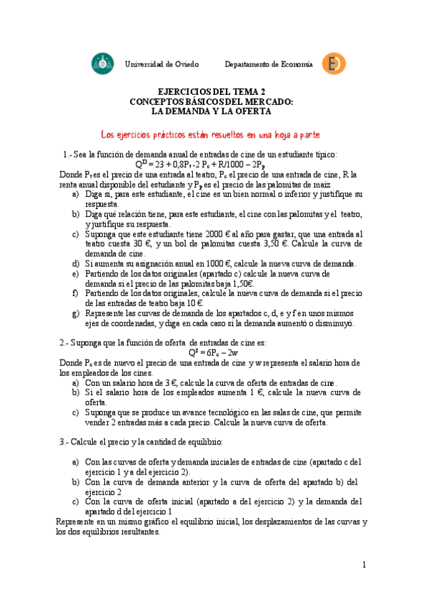 Ejercicios del tema 2 de microeconomía RESUELTOS