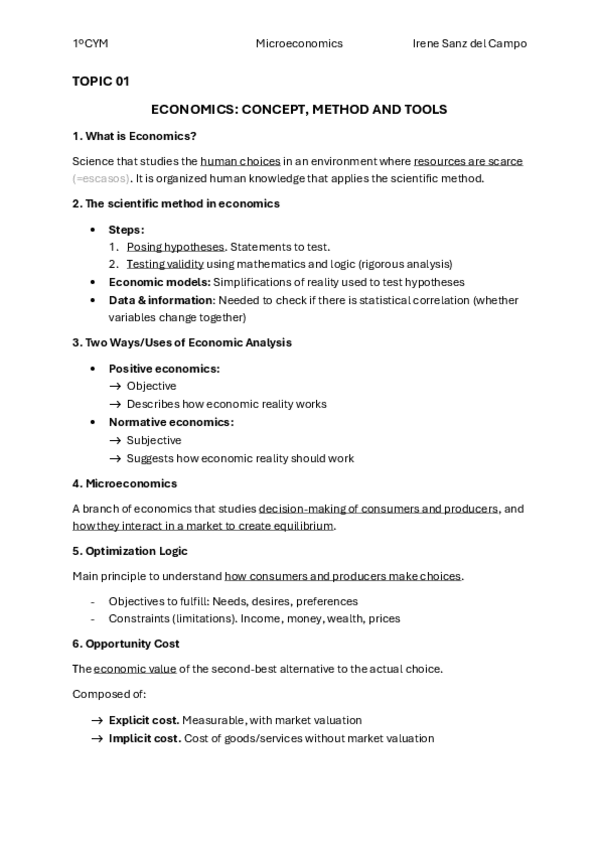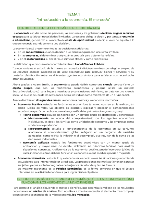 Tema 1 de introducción a la microeconomía en bilingüe curso 2025-2026