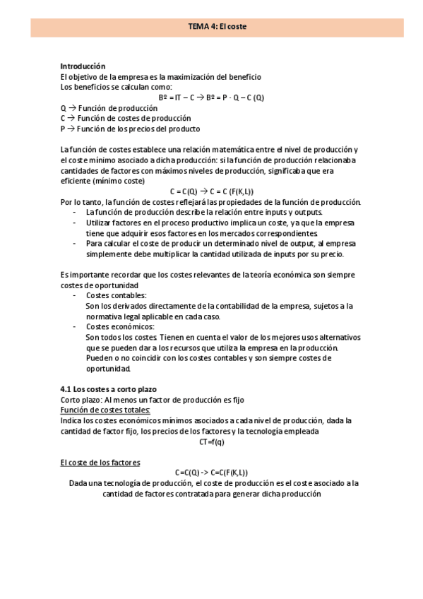 Resumen tema 4 Introducción a la microeconomía