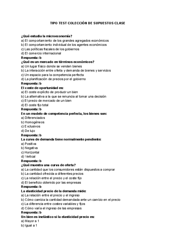 Examen que abarca los contenidos referidos al 1º parcial de la asignatura de INTRODUCCIÓN A LA MICROECONOMÍA (ADE, ECONOMÍA Y MARKETING).