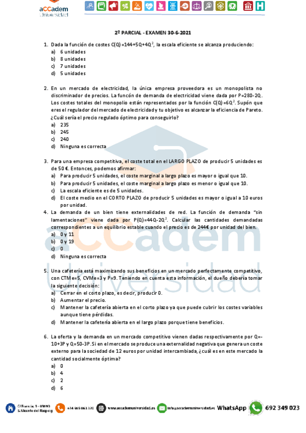 EXAMENES MICROECONOMÍA