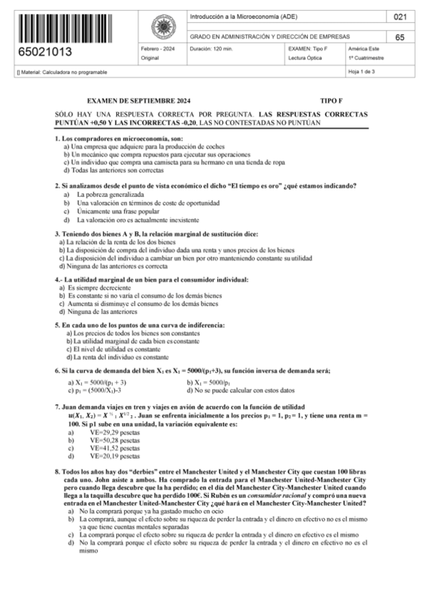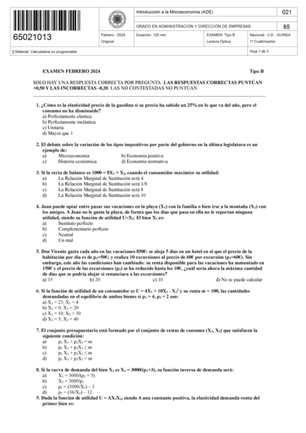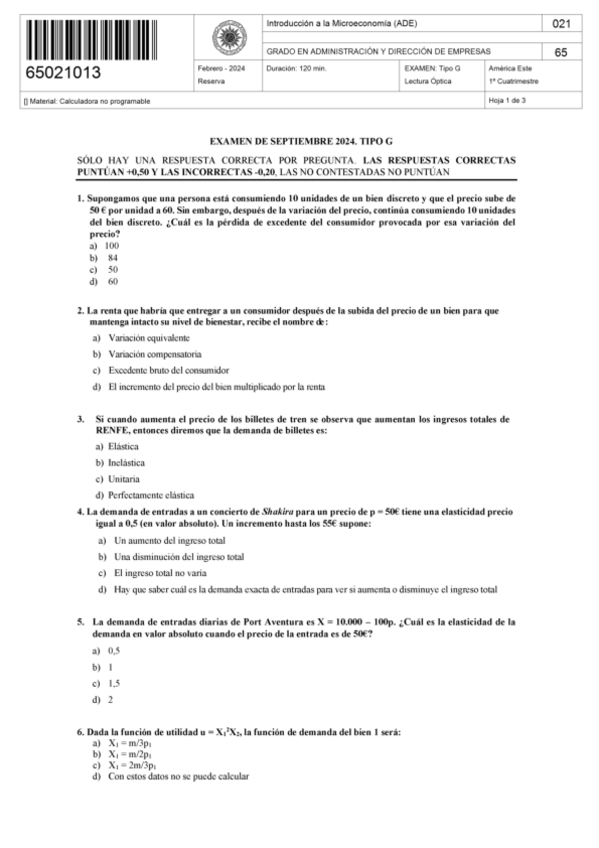 EXAMENES - INTRODUCCIÓN A LA MICROECOMÍA