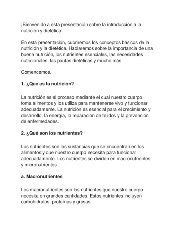 Introducción a la nutrición y dietética
