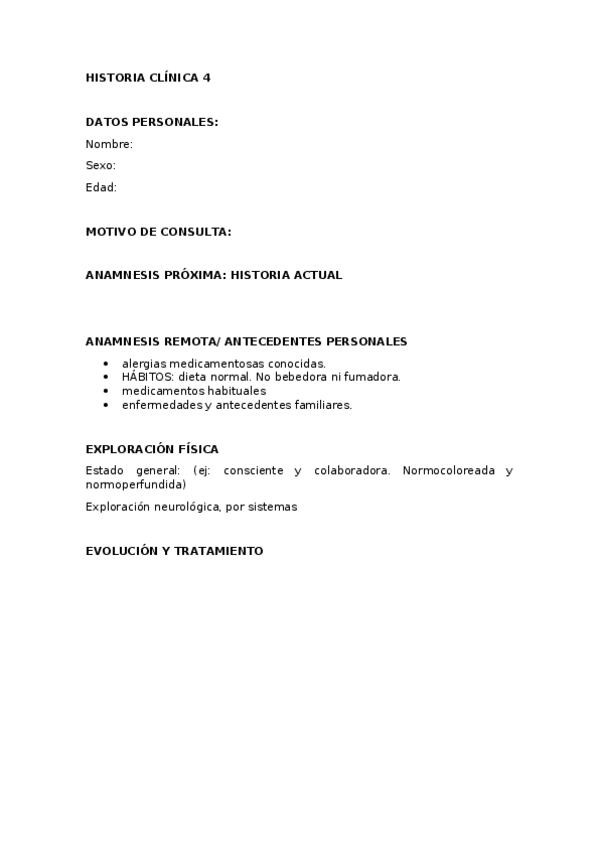 Historia clínica ejemplo
