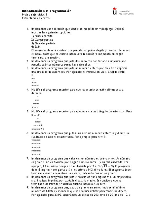 He publicado nuevos ejercicios de 1º Introducción a la Programación: Hoja 3
