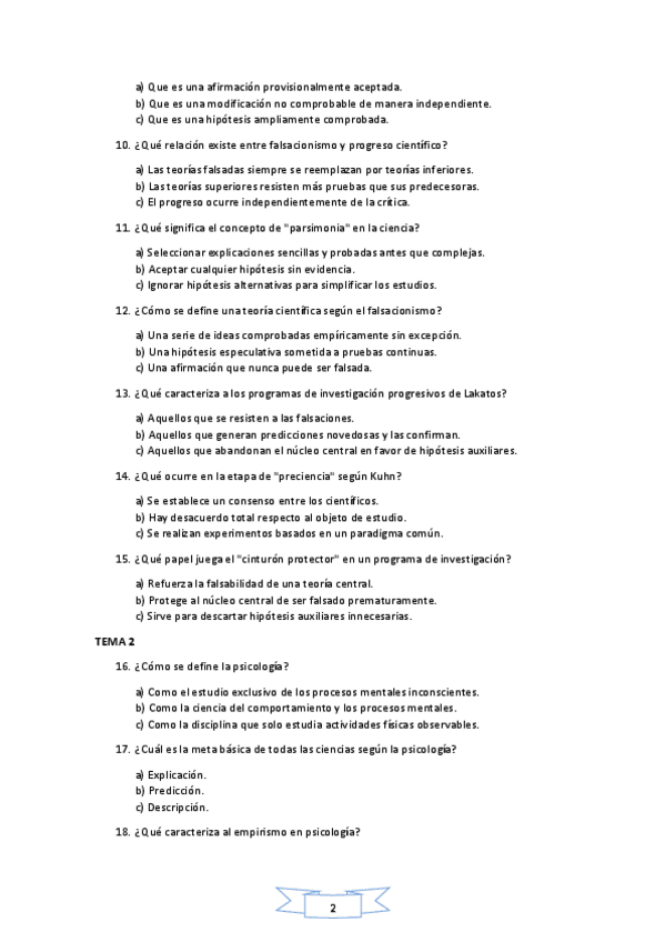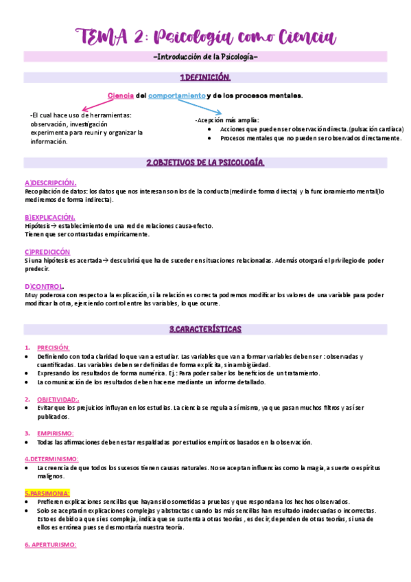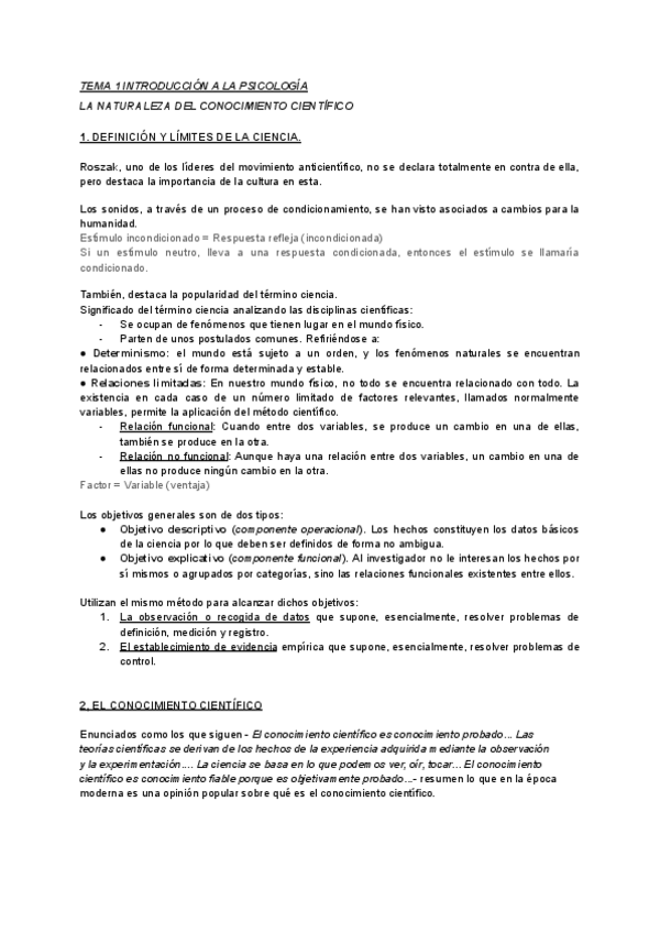 Tema 2 de Introducción a la psicología con nota de 9. La psicología como ciencia.