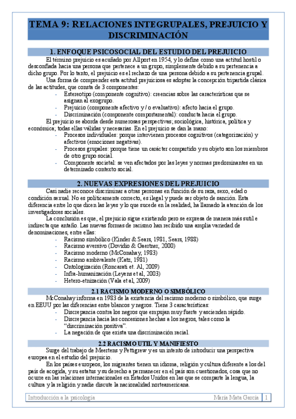 TEMA 9. Prejuicio y discriminación