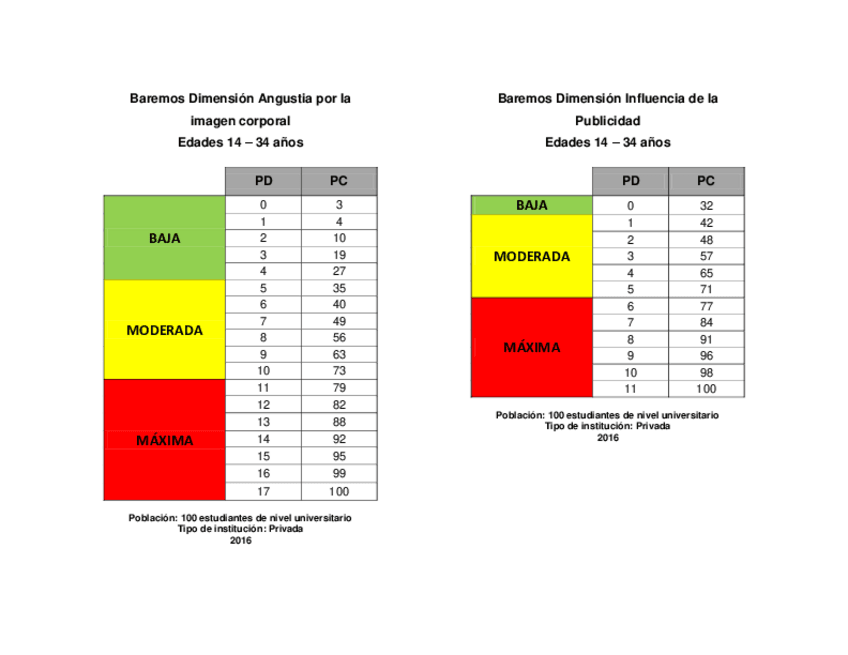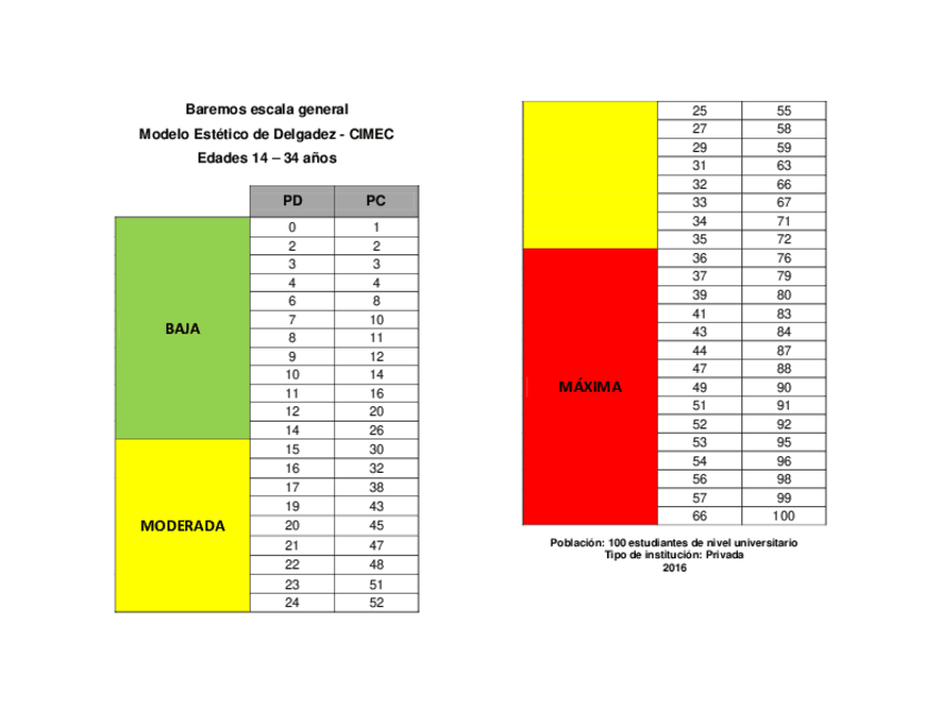 Instrumentos y baremos del BSQ y el CIMEC en población adolescente, aplicacado en 2016.